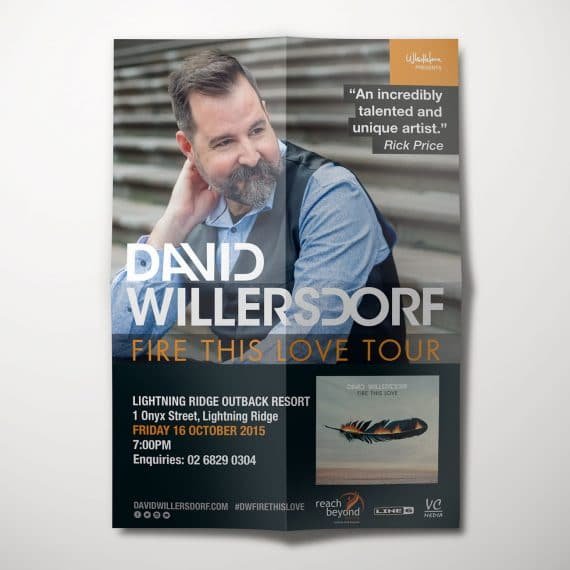 In 2015, musician David Willersdorf recorded a selection of his original songs in Nashville. The songs which were produced by Rick Price formed an LP titled Fire This Love. This was a new musical direction for David as previously he was known for gospel music. We were privileged to work alongside David on the design of his album cover, promotional material and related merchandise. This new soul and blues release marked a new season for David that hearkened back to a vintage sound. Listen to the album here
